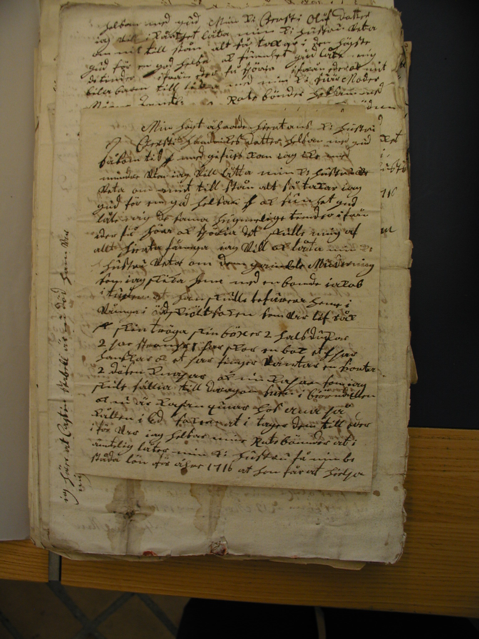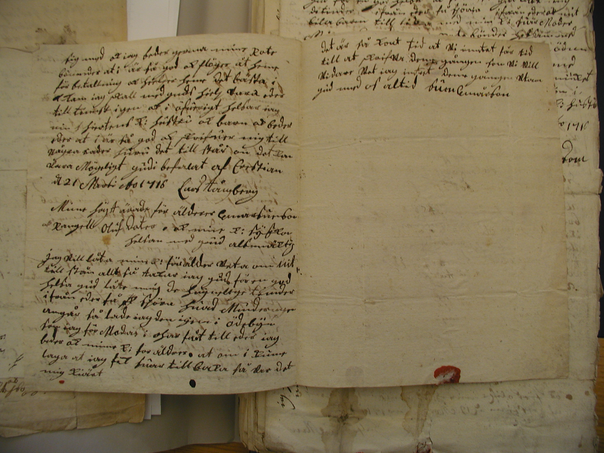 Exempel på uppsnappade brev: Lars Asmundsson skriver till sin hustru på gården Teåker i Dalskogs socken. Adressidan Sidan 1 Sidan 2